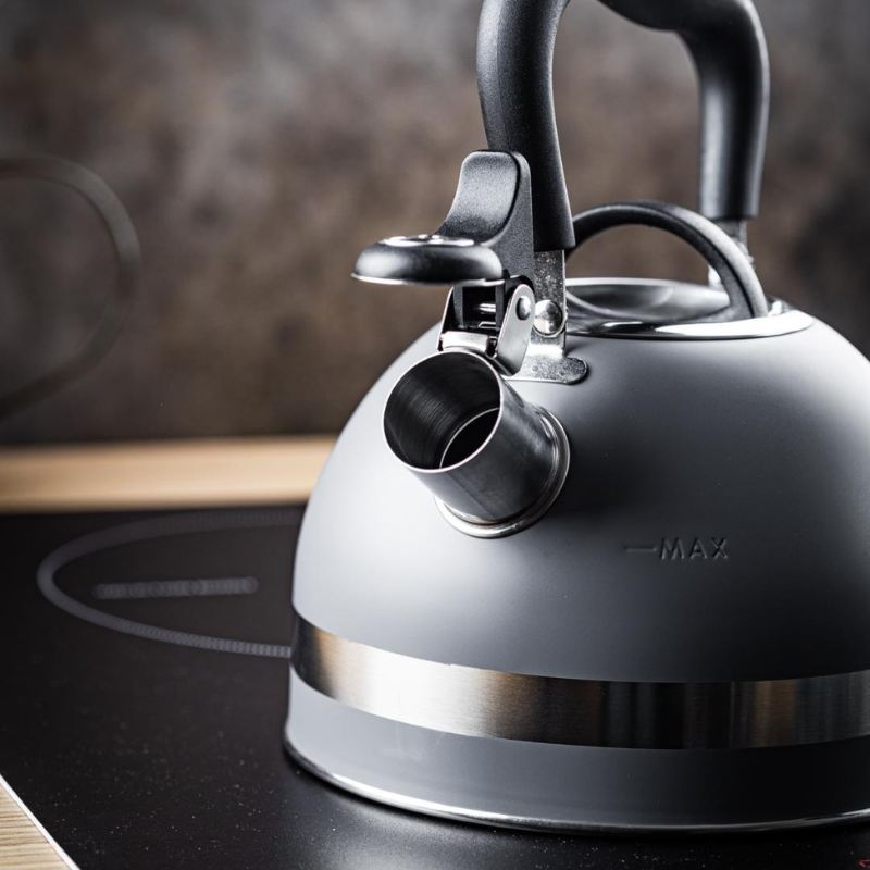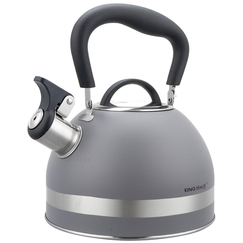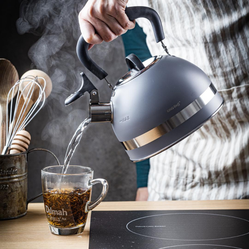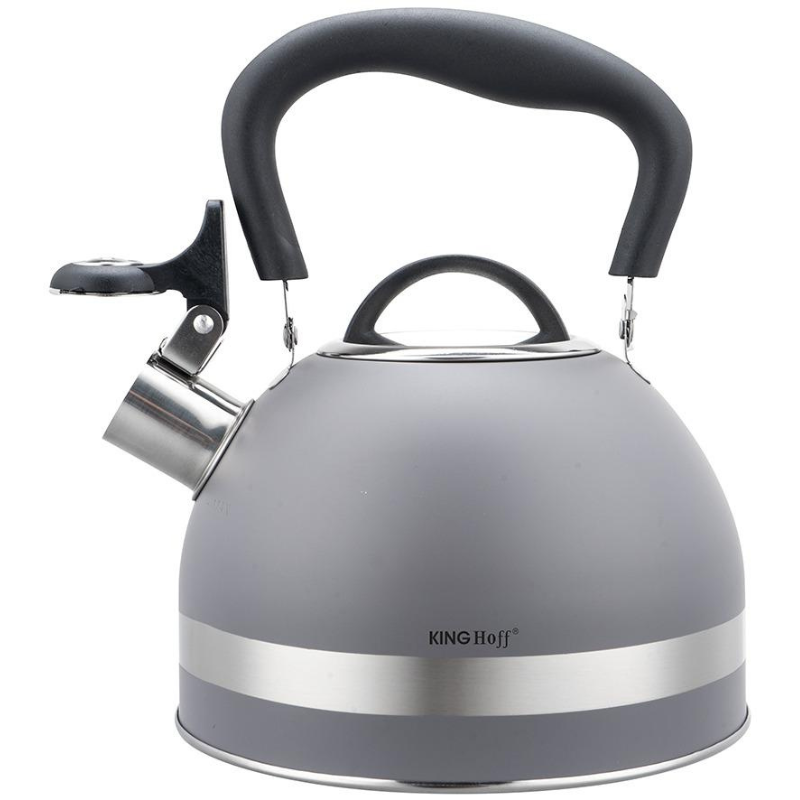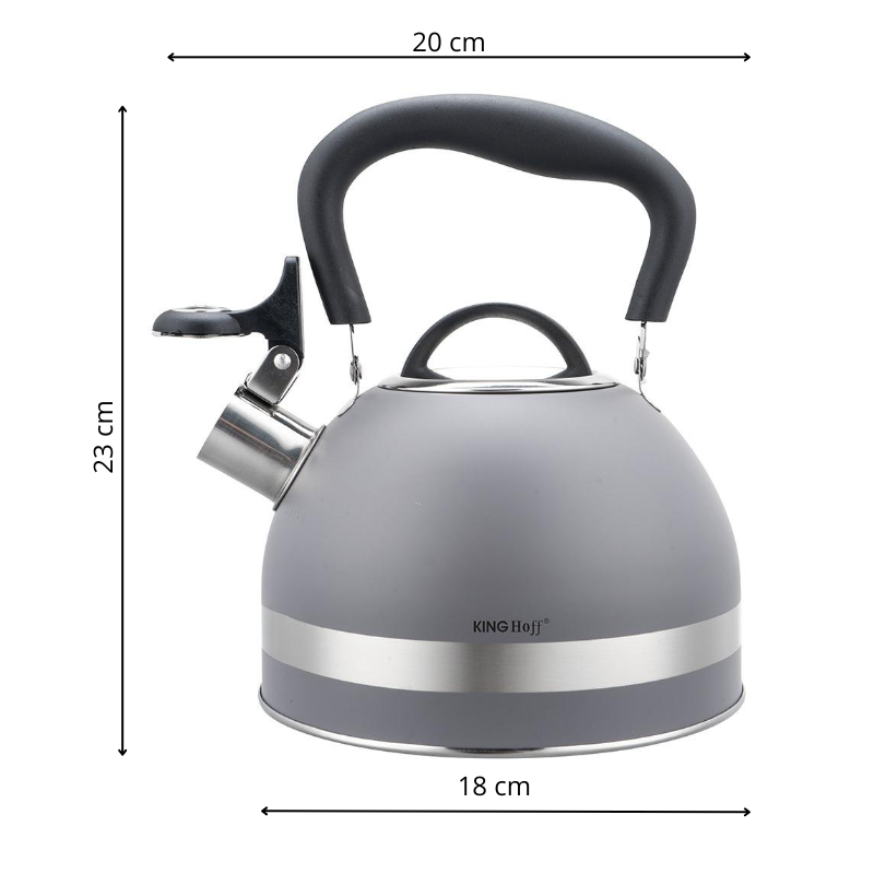 Czajnik stalowy 1,8 l szary KingHoff z gwizdkiem, indukcja, ergonomiczna, rączka