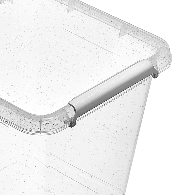 - pokrywki pojemnika zamykana jest na srebrnego koloru zatrzaski znajdujące się na długich bokach pojemnika,