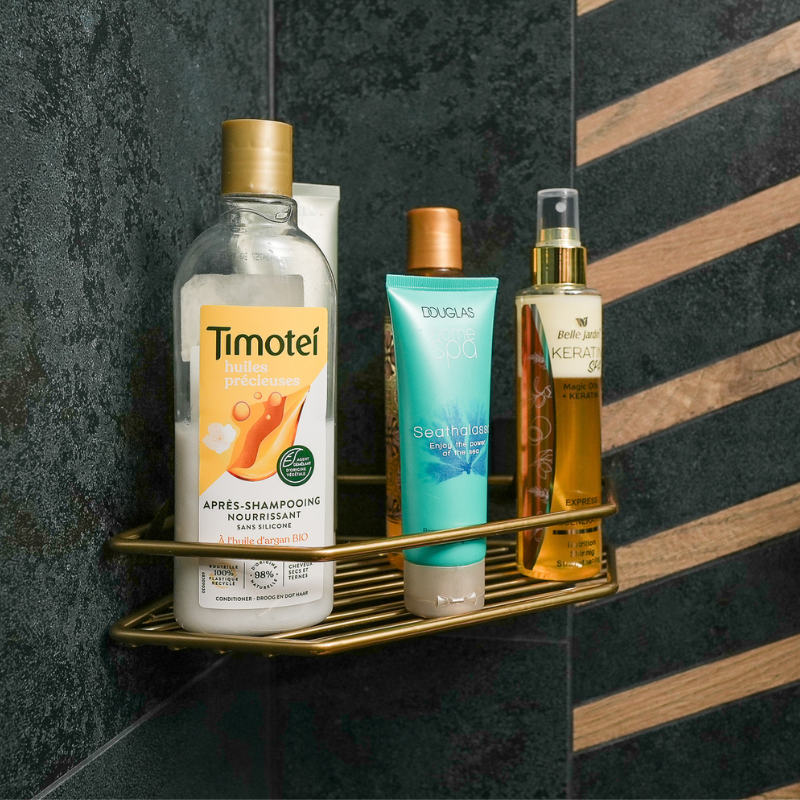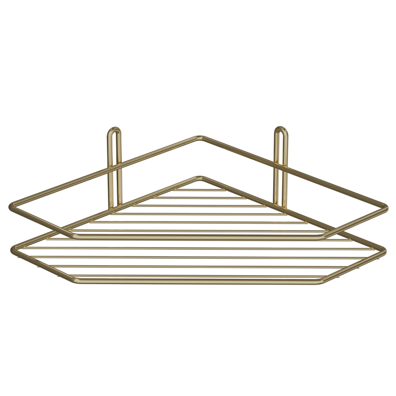 Dodaj luksusowego akcentu do swojej łazienki dzięki narożnej półce prysznicowej w kolorze złotym, która łączy wysoką jakość wykonania z nowoczesnym designem. Wykonana z grubego stalowego drutu (5 mm), pokrytego innowacyjną powłoką w kolorze złotym, stosowaną również w koszach do zmywarek, zapewnia maksymalną odporność na korozję i wilgoć.