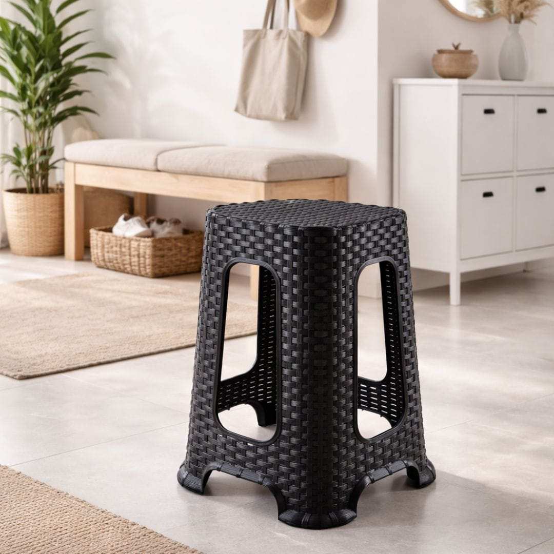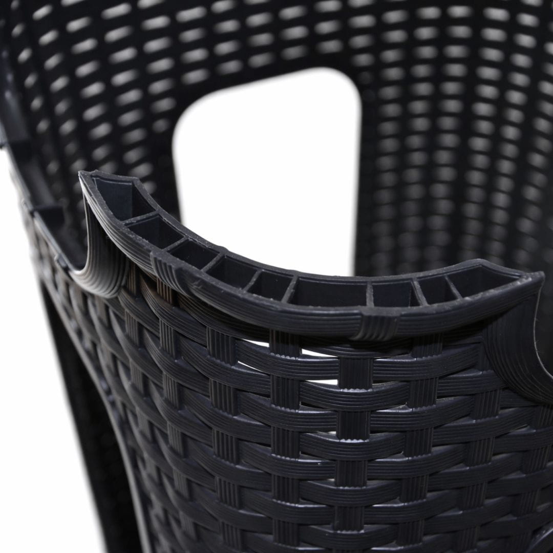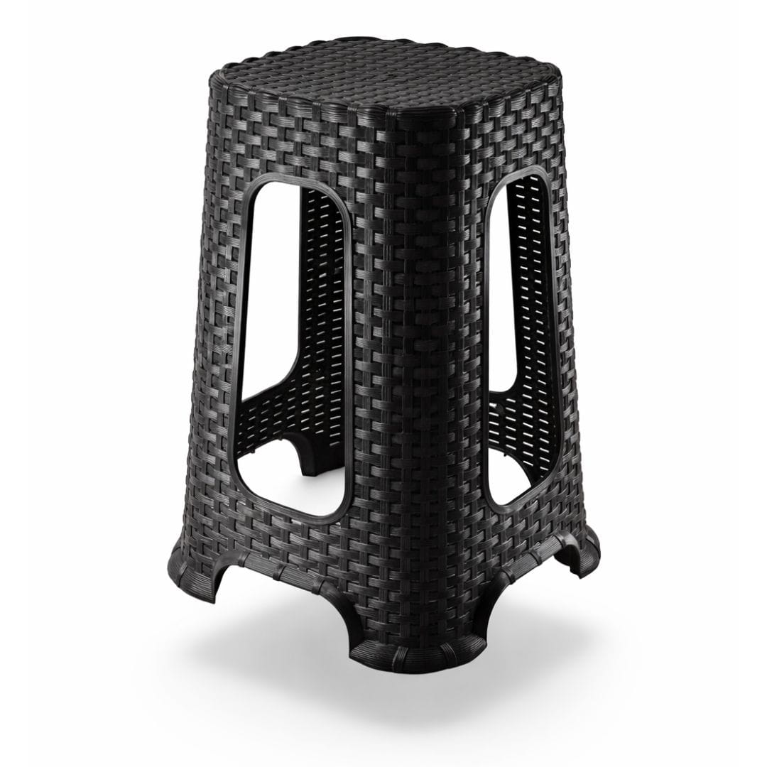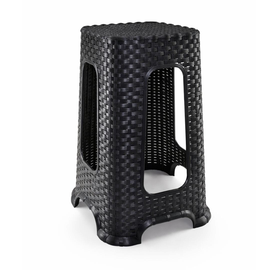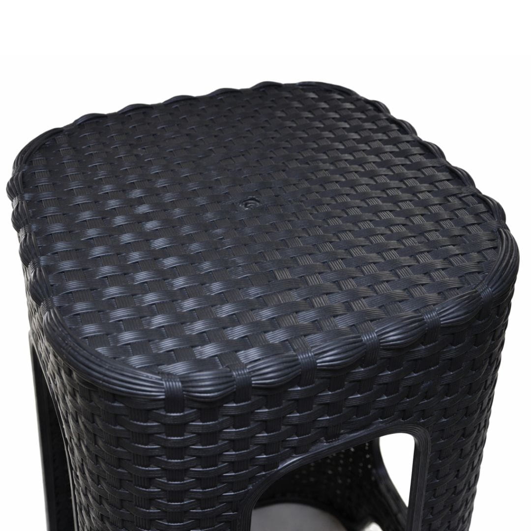 Taboret w kolorze antracytowym z efektem rattanu to połączenie nowoczesnego stylu, trwałości i ekologii. Wykonany z wysokiej jakości tworzywa sztucznego pochodzącego z recyklingu. Po zakończeniu użytkowania również nadaje się do ponownego przetworzenia.