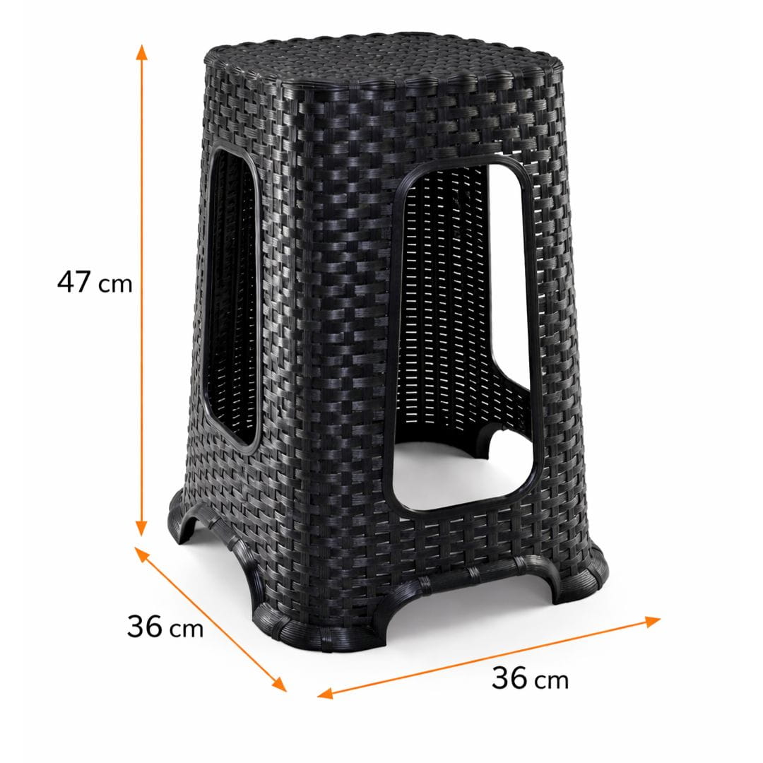 Taboret stołek Rattan antracytowy 47 cm wytrzymały, lekki, z tworzywa z recyklingu