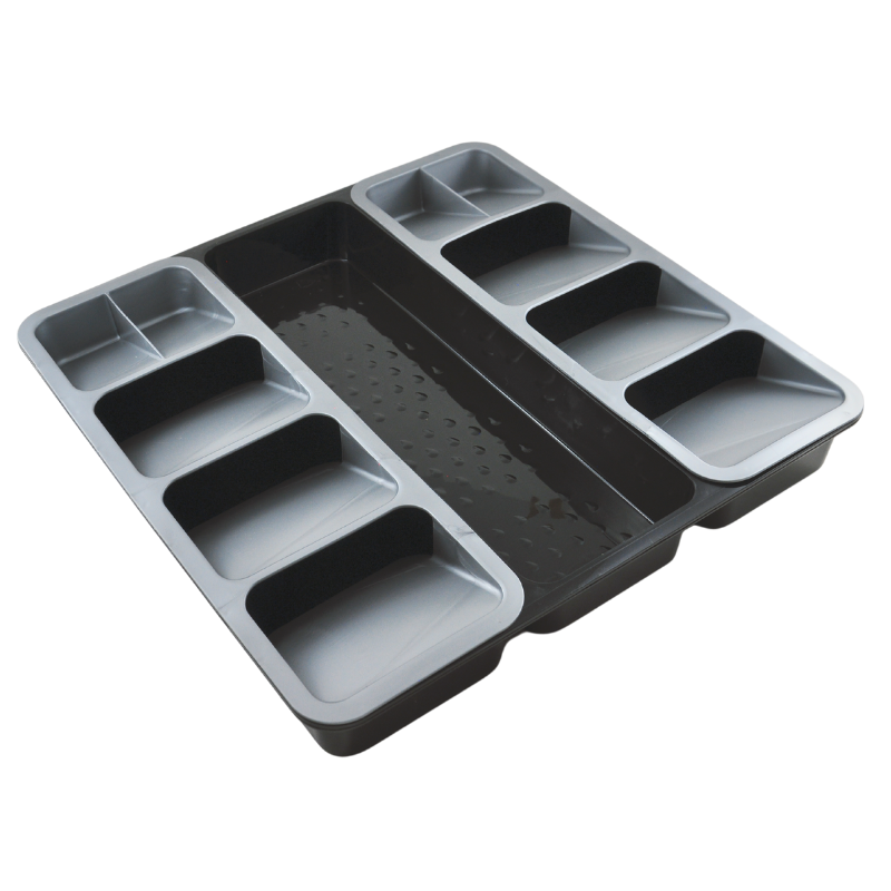 Duży wkład do szuflady, wkład na sztućce potrójny Czarno - szary