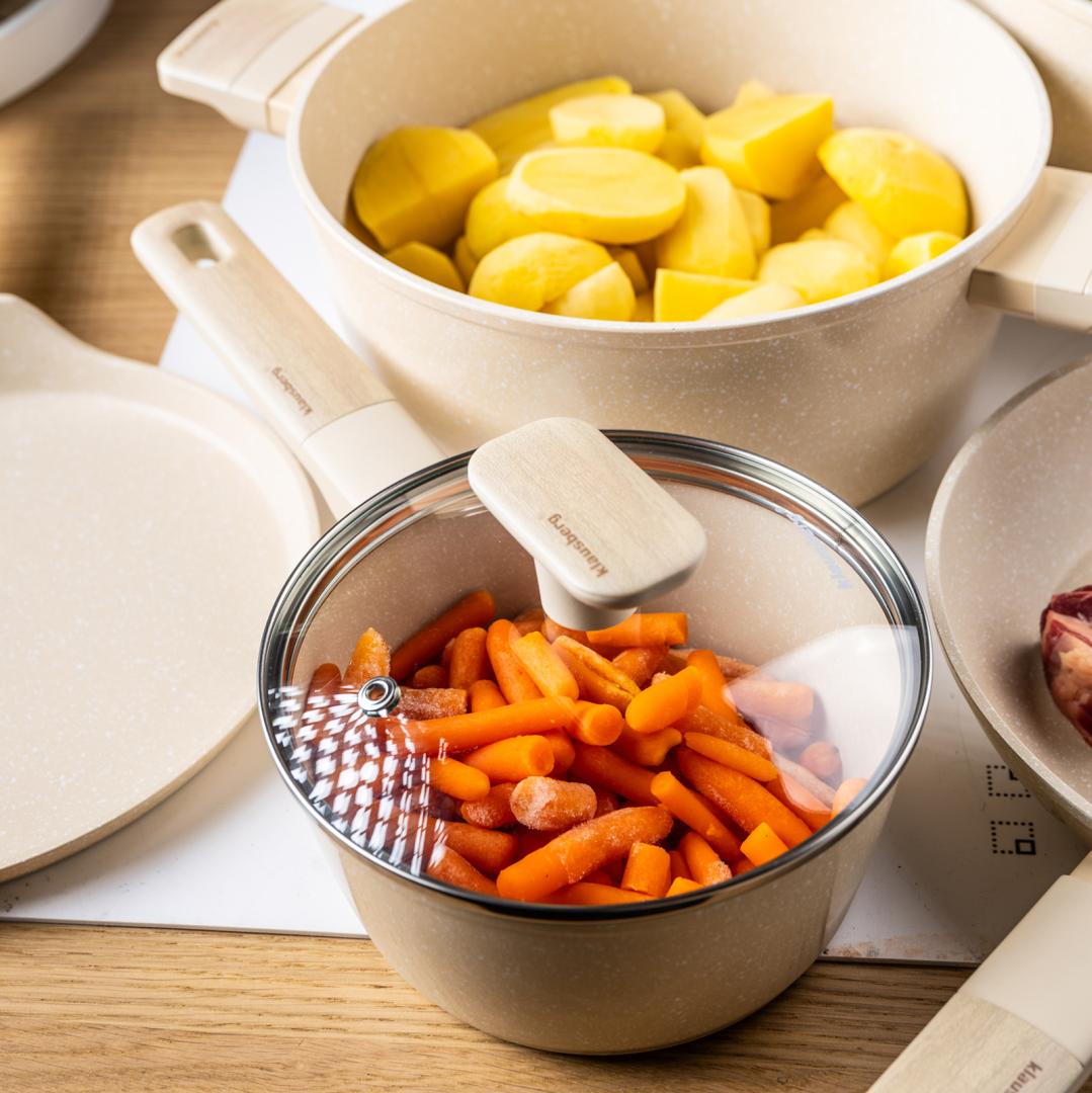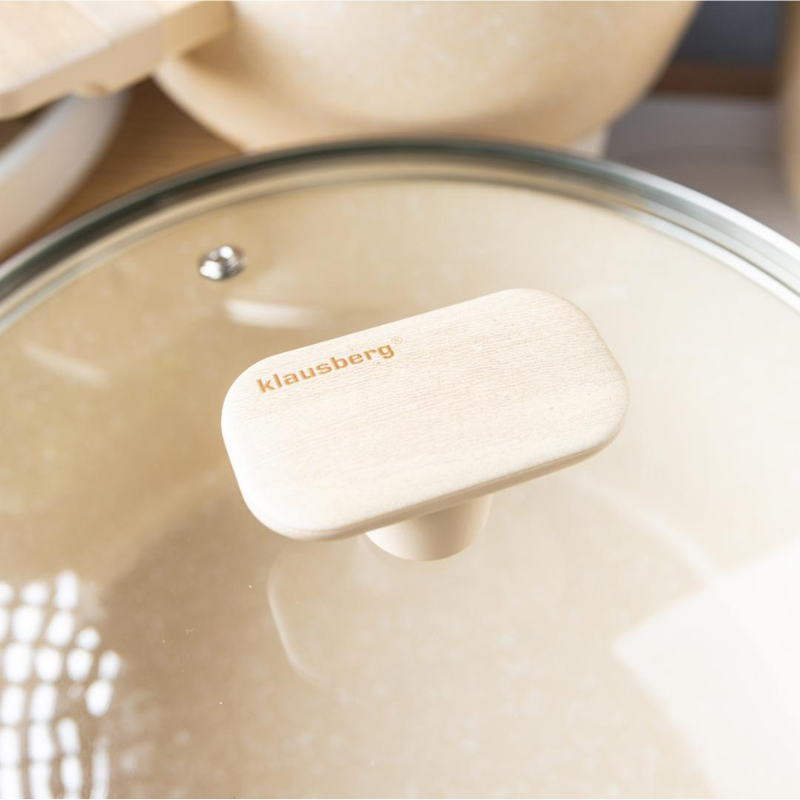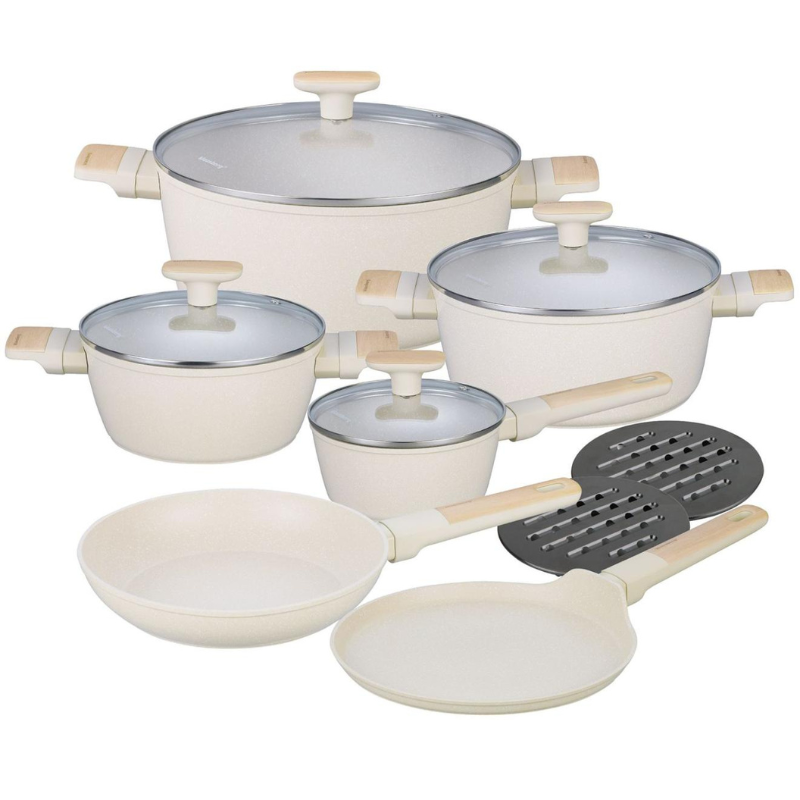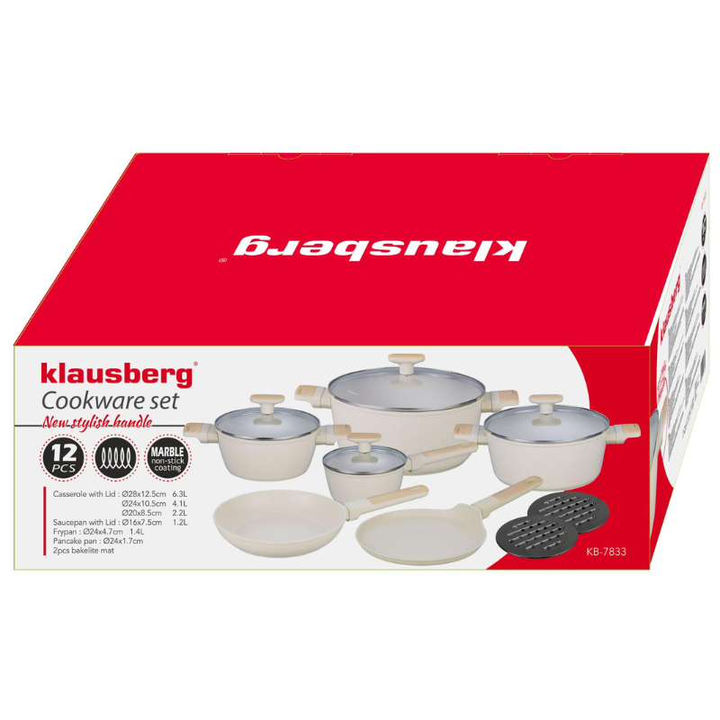 Zestaw garnków Klausberg KB-7833 – 12 elementów, marmurowa powłoka, do indukcji, beżowe