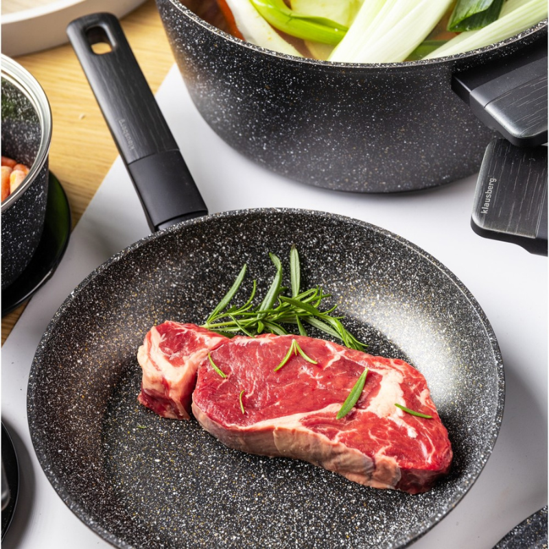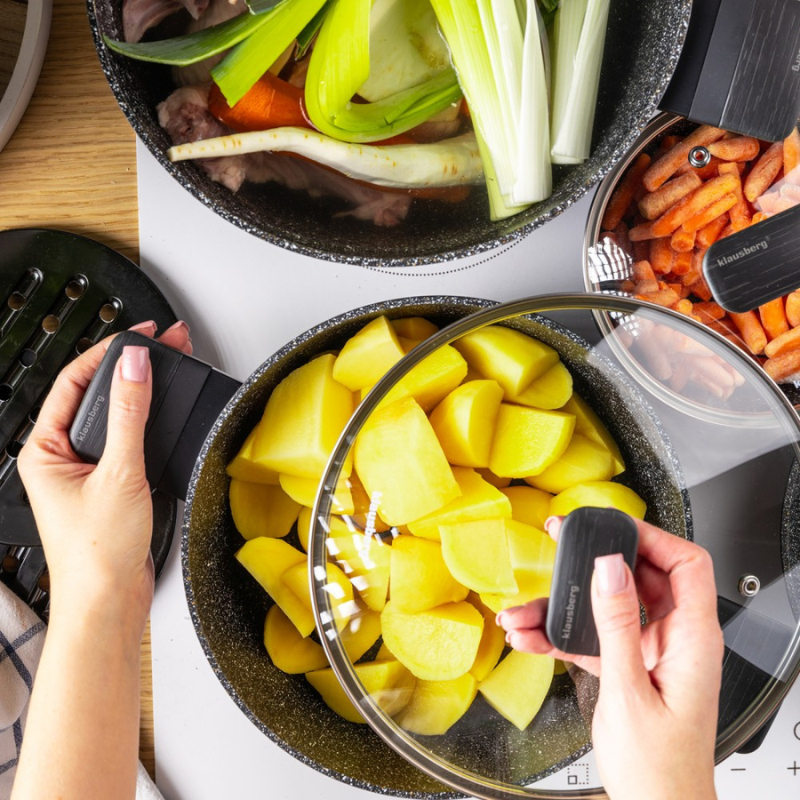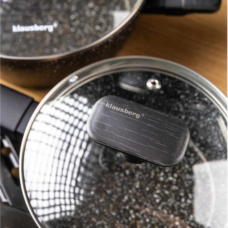 Zestaw garnków Klausberg KB-7830 – 12 elementów | marmurowa powłoka | indukcja | czarne z uchwytami soft touch