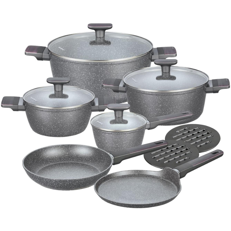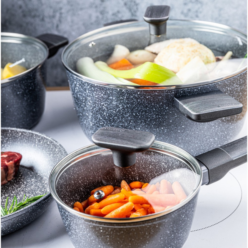 Odkryj funkcjonalność i elegancję z zestawem garnków Klausberg KB-7832. To komplet 12-elementowy wykonany z wysokiej jakości aluminium z trwałą, marmurową powłoką nieprzywierającą. Dzięki różnym rozmiarom naczyń przygotujesz z łatwością codzienne dania, obiady rodzinne i wykwintne kolacje. Garnki są odporne na zarysowania, równomiernie się nagrzewają i są przystosowane do wszystkich rodzajów kuchenek, w tym indukcyjnych.