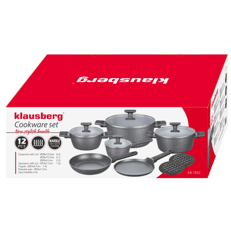 Zestaw garnków z powłoką marmurową Klausberg KB-7832 – 12 elementów